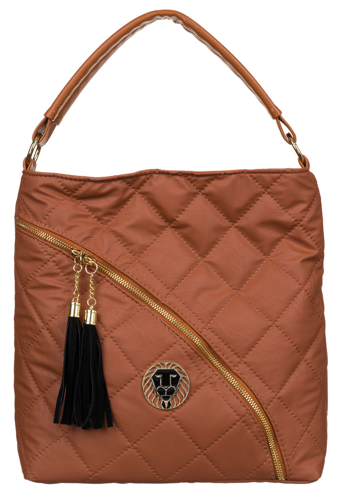 Dodatkowo front torebki zdobi lew - logo, z którego słynie marka Peterson® oraz ozdobne frędzle.